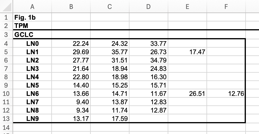 Hey folks, Did you know that you can do statistics in R? HA! Of course it is. As the first sentence of its Wikipedia entry says, “R is a programming language for statistical computing and data visualization”. I rarely discuss using R for statistical analysis and focus far more attention on the data visualization power of R. This week, I’d like to share a set of panels from a figure in a paper recently published in Nature, “Lymph node environment drives FSP1 targetability in metastasizing melanoma”. This figure actually has 12 panels. One is a picture of the mouse model that was used (a) and another is an immunoblot (d). Panels i through l are the same style as e through h. I suspect that if you can figure out how to make the scatter plot in panel b, you can create the one in panel c. Similarly, if you can do the bar plots in panels e and f you can do those in g through l. Really, if you can do e, you should be able to do f. I’ll have things to say in a critique video that I’ll post on Monday, but let’s say you want to recreate these panels, how would you go about doing that in R? Before I forget, you can download the data as a MS Excel workbook from the Nature site. Let’s think about the scatter plot first. If you look at that workbook, you’ll notice that the data are very much not tidy! How would we get the data tidy? Well, first we need to read it in. We can use the Now to plot the data! We can generate the scatter plot using First is the fit and the confidence interval. To fit a line through data,
