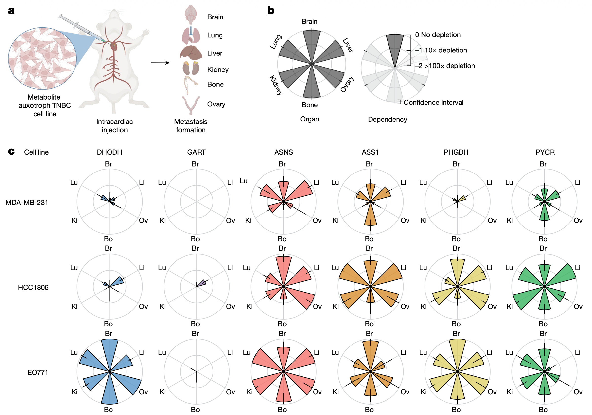 Hey folks, Happy 2026! It’s great to be joining you on another trip around the sun as we explore data visualization, R, and reproducible research. Later today I’ll be hosting a workshop on the design of data visualizations. If you register ASAP, I can probably still get you in. If you missed this one, but would like to be notified when I run this workshop again, reply to this email and let me know! This week I found a pretty unique plot type in a paper published in the journal Nature This is Figure 2 from the open access paper titled, “Nutrient requirements of organ-specific metastasis in breast cancer” by Keene Abbott and colleagues. I’m not totally convinced of what I think of this figure yet, so stay tuned for Monday’s critique video. This is what’s called a “petal plot” since each of the wedges coming out of the center looks like a petal of a flower. I really like how they provide an interpretative key for the plots in panel b. They do the same type of thing in Figure 3. I like this because they are acknowledging that this is a novel plot type and want to help their audience interpret the figures correctly. I was surprised to see that this figure was made using GraphPad Prism! My institution threatened (once again) to cancel our site license to Prism sending shock waves of panic through campus. Whether they intend to follow through on their threats this time remains to be determined. So, I naturally wondered how I’d go about making this plot in R. FOR FREE! The most striking part of this figure are the petal plots. I know that a pie chart is a stacked bar plot in polar coordinates. I wondered whether a set of side-by-side bar plots in polar coordinates could get us the petal look. Sure enough it does! We can map the metastasis site (e.g., brain, lung, liver) to the x-axis, the level of depletion to the y-axis, and the gene (e.g., DHODH, GART) to the fill color. The bar plot can be generated using They also include 95% confidence intervals. We can get these as well using Of course, there isn’t just one petal plot. There are 18. We can match their appearance by using What do you think of petal plots? They remind me of radar or spider or web charts. Regardless, I look forward to trying to recreate and possibly offer some improvements in next week’s livestream video. If you want to get a head start, you can download the data for free from the Nature website.
