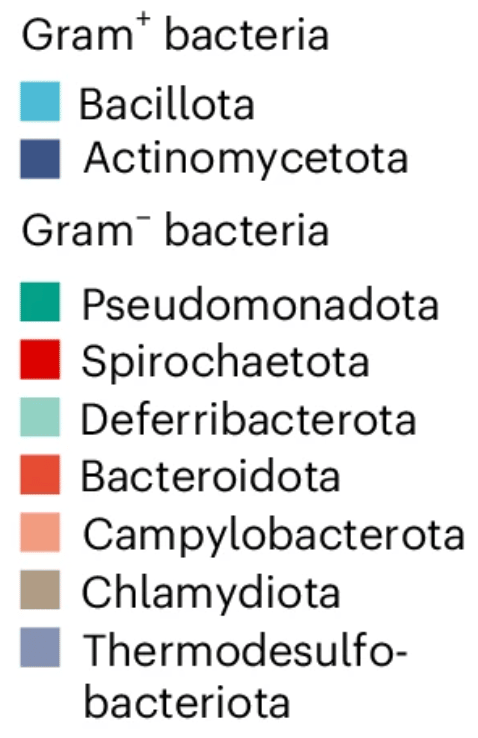 Hey folks! Before launching into this week’s visualization, I’m looking for a bit of feedback. Since November, I’ve settled into a new routine with this newsletter and the YouTube channel. Each week this newsletter introduces a visualization at a 30,000 ft view or discusses a specific topic in some depth (example). The following Monday I post a video critiquing the visualization (example). Then on Wednesday (or Tuesday like this past week), I livestream a video where I recreate the visualization and refactor or modify the visualization based on Monday’s critique (example). This is working well for me. I’m honestly surprised that I’m able to find new things each week in Nature and its upper echelon journals without too much effort. How is this flow working for you? Could you reply to this email and let me know? I’m curious what you think of the livestreams. The metrics YouTube gives me for livestreams are not as strong as they were for my recorded and edited videos. But, I honestly don’t have the time to produce the more polished videos. What could I do to make the livestreams more effective and engaging? A question I asked in the community forum was whether people wanted me to only do the refactoring or if it was ok to do both the recreation and refactoring even if it was clear I didn’t like the plot. The feedback I received was 3 to 1 in favor of doing both rather than just the refactoring. What do you think? Here’s my take. I think recreating the plot has value even if I don’t like it. There are two main reasons. As an example, consider the stacked bar plot I discussed last week. First, recreating a visualization forces me to do things that I wouldn’t normally do. For example in last week’s visualization the authors were able to create what were effectively section headings within the legend for taxa that stained Gram-positive or -negative. If I went directly to the line plots without recreating the stacked bar plot, I wouldn’t have had the chance to think about how to recreate that look. I think this blew people’s brains when I did this on the livestream. The second reason is that recreating a visualization tells me a lot about the data and the approach the investigators took to creating the plot. For example, in the stacked bar plot example, it was only by digging into the actual data that I was able to see that there were actually other minor populations not shown in the legend. It also helped me notice they were doing weird things with pooling time points in Figure 5. Even if I never publish a stacked bar plot of my own data I was able to learn a lot by recreating this one. Do you find my logic compelling? Let me know! This leads in nicely to this week’s visualization. I’ll show my cards right away and tell you I’m not a fan of this set of panels from the paper, “Specialized RNA decay fine-tunes monogenic antigen expression in Trypanosoma brucei” published earlier this week in Nature Microbiology. I’ll say more on Monday, but it’s effectively a volcano plot in a polar coordinate system (WHY!?!?). Even if I never use The thing I’m most excited to figure out is the legend. You’ll notice that they have three colored circles under the title of “VEX known interactors” and the two other categories have a single circle. How would we recreate this look? I think it’s actually a lot like the legend in last week’s visualization. As a reminder, here it is: I recreated it by using an aesthetic (e.g., For this week’s legend, imagine if we had taken the same legend we had last week and replaced the The other added wrinkle here is that we effectively have three legends. For the radial volcano plot, I’ll likely use the I’m not sure when I’d want to add this type of structure to my legends. But these types of recreation exercises allow me to do two things. First, they force me to do something that I wouldn’t naturally think of doing. If I jumped directly to the refactoring, this design element wouldn’t be necessary and I’d easily blow off doing it. Second, it forces me to do some problem-solving using the powerful tools I have at my disposal. This reminds me of how I was bothered by the bleed through of a grid line behind a dashed line that I had in a recent visualization. My solution was to put a thick white line down followed by a thin dashed line. I noticed that I still had bleed through of the dashed line from behind my jittered points because I was using